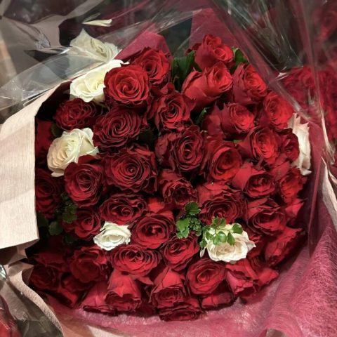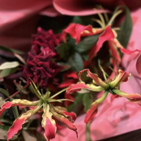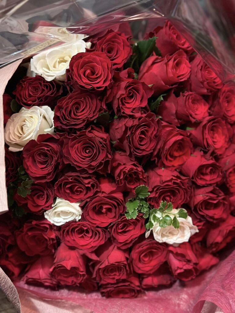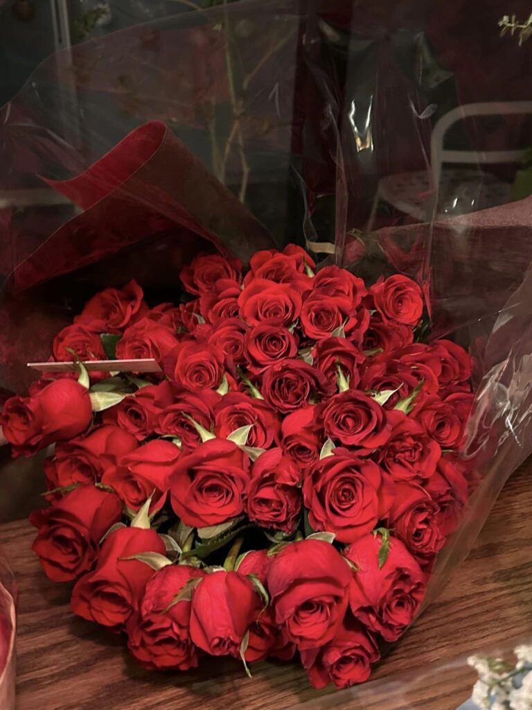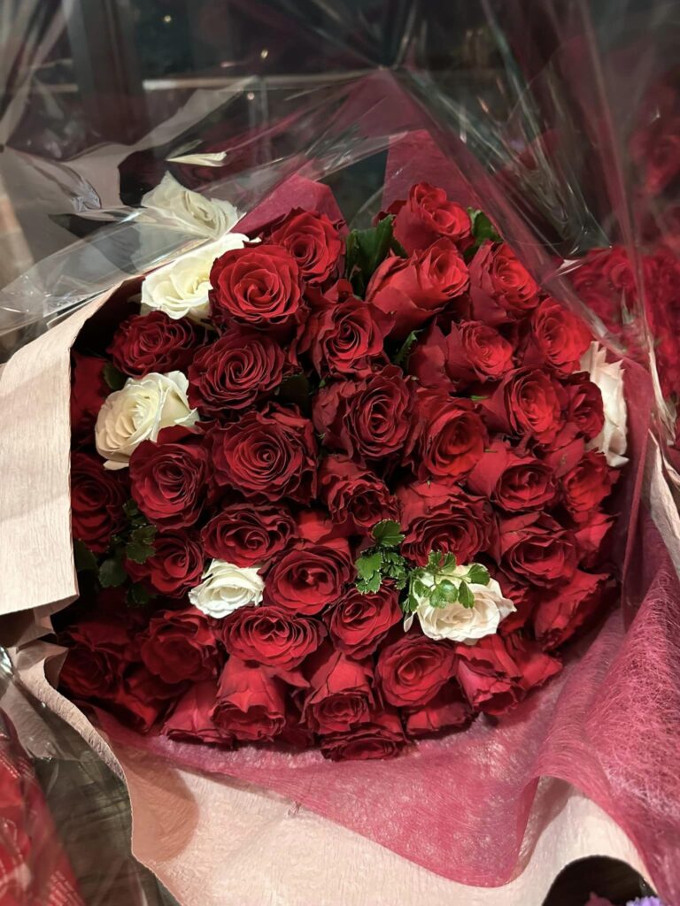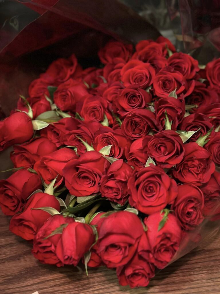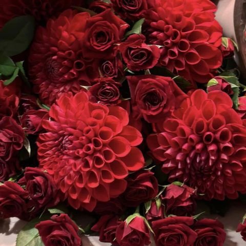 年齢60本のバラとダリアの花束が3つで180本!
