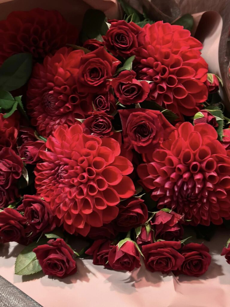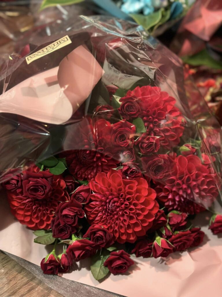 私のダリア好きをご存知のみなさまと三田花さんのおかげで、立派なダリアの花束がたくさん!