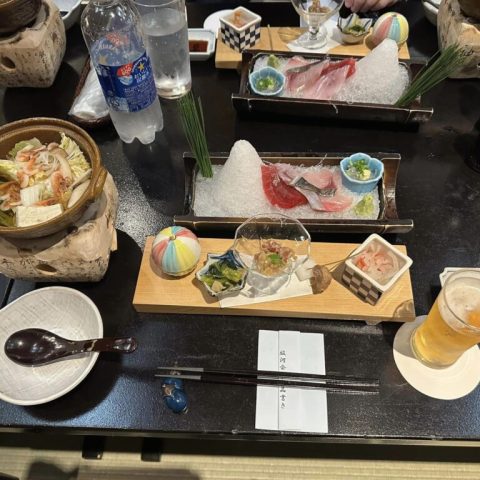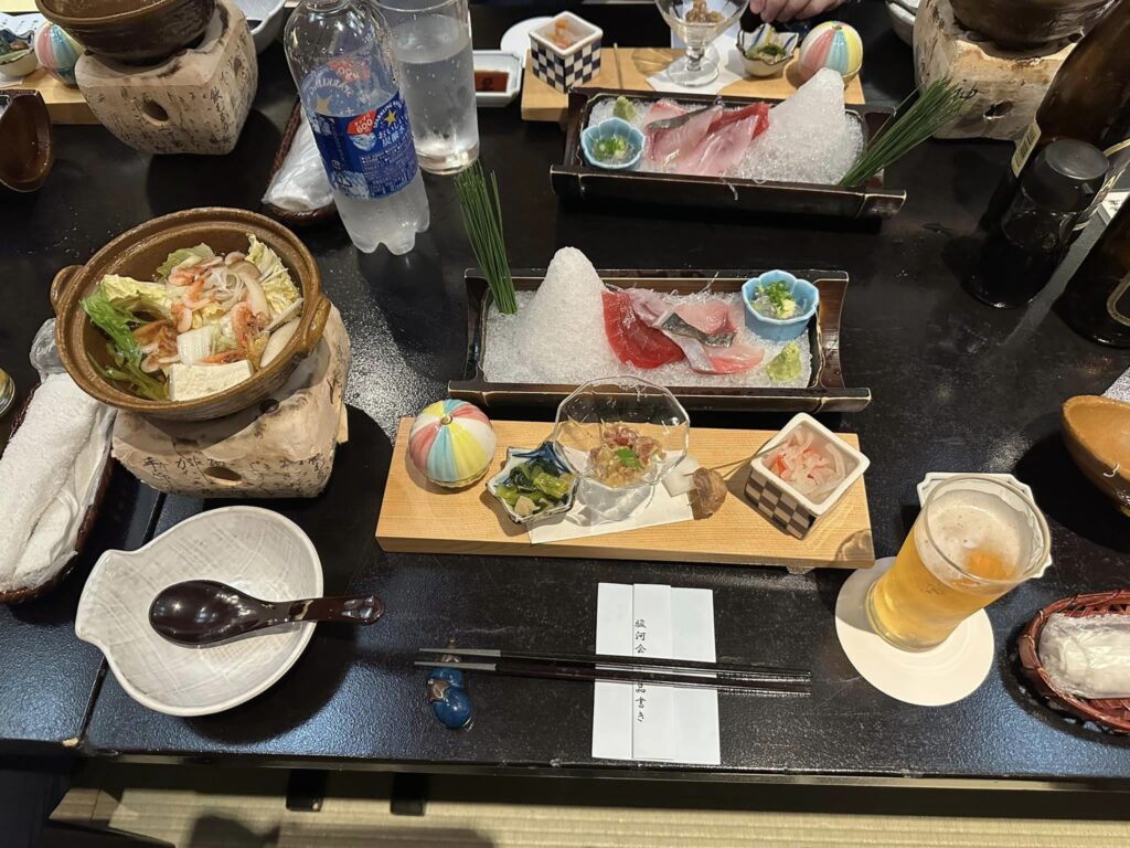 見学後、夜は駿河料理の懇親会で奨学生とロータリアンの交流をはかりました。