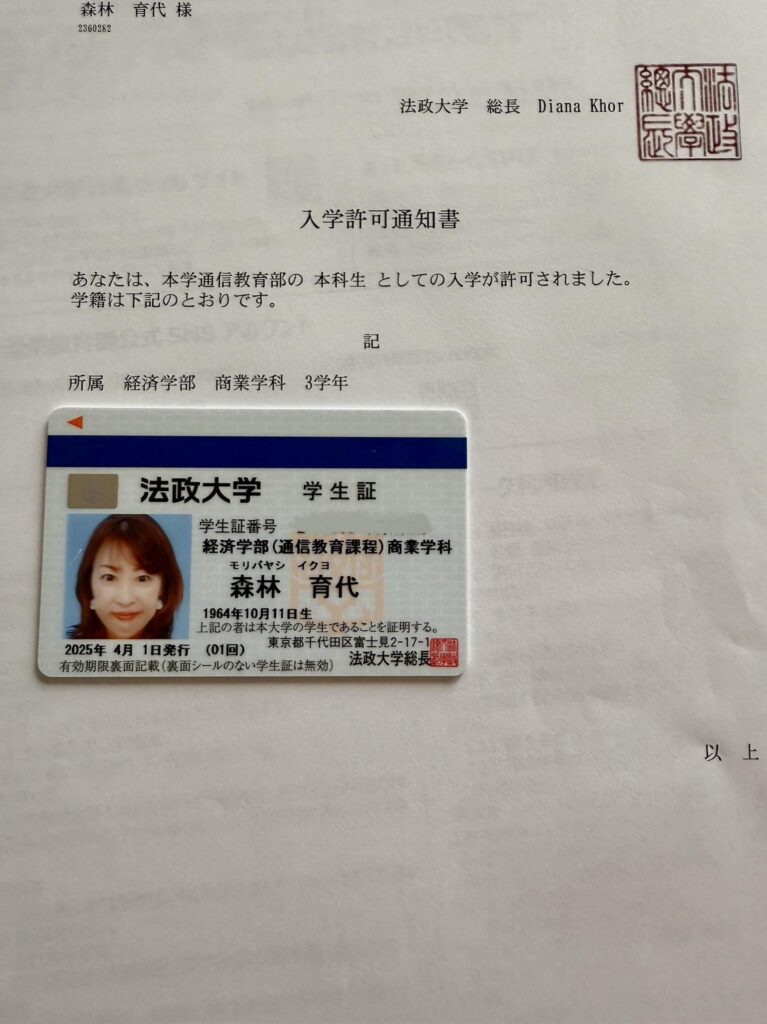 このたび、法政大学 通信教育部 経済学部 商業学科に3年次編入が許可され、