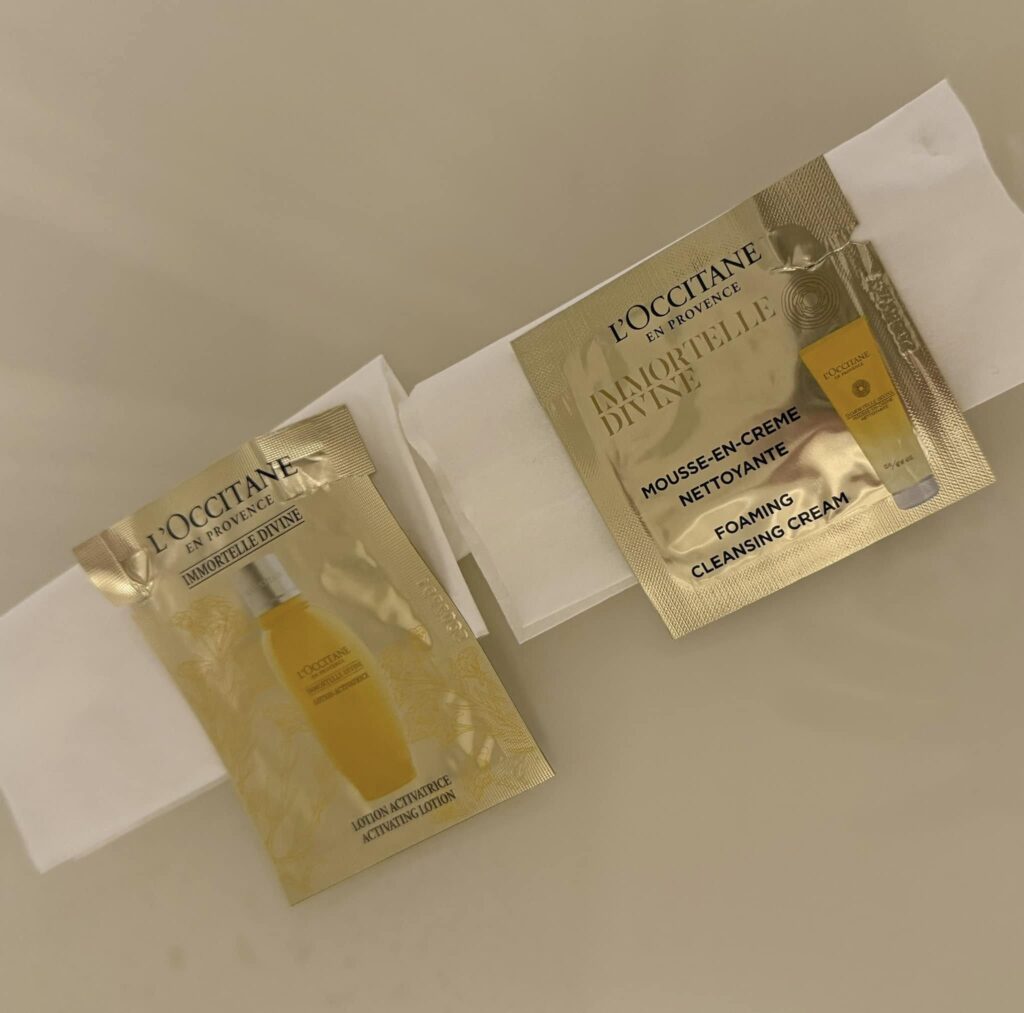 荷物を減らそうと、以前いただいたコスメのサンプルを持って行き、楽しみにしていた美容オイルをお風呂上がりに顔から体までヌリヌリ…