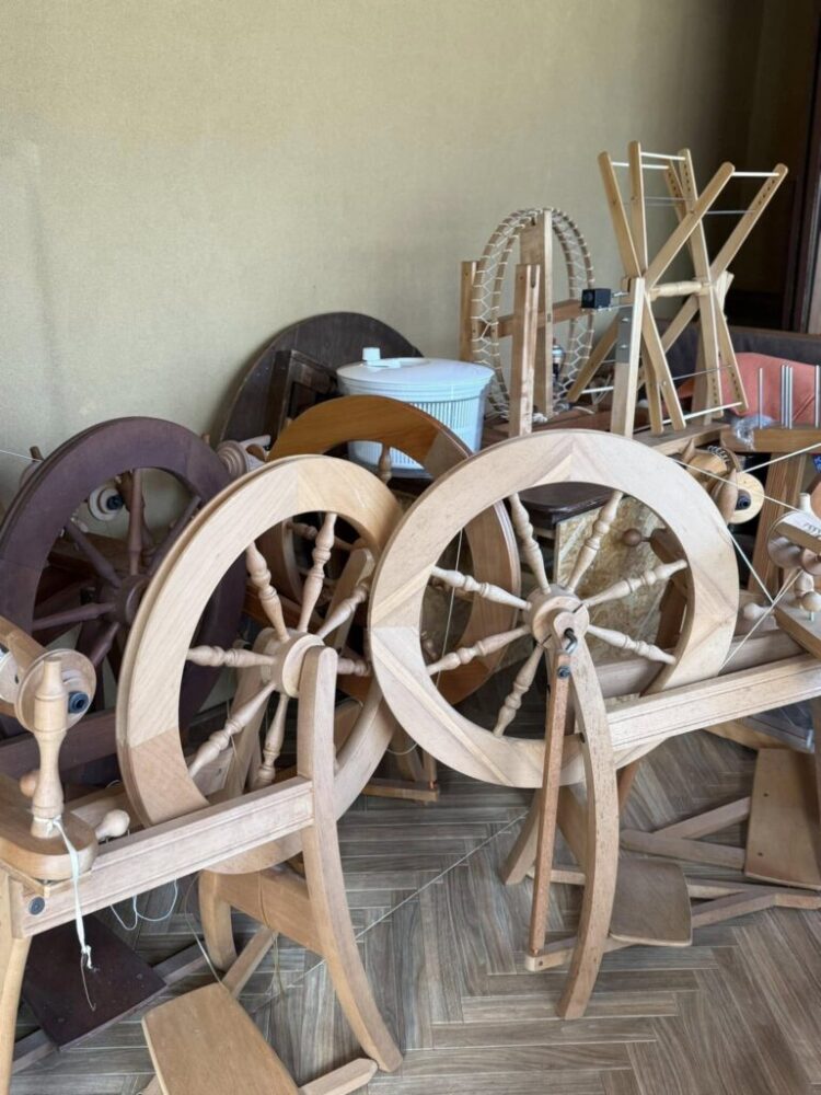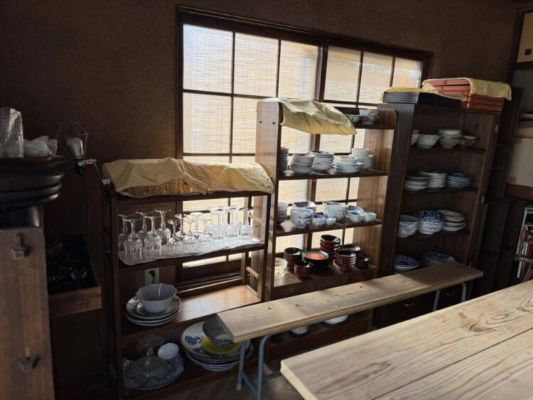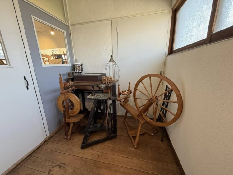 古道具や食器の販売、2階では機織りのワークショップも。