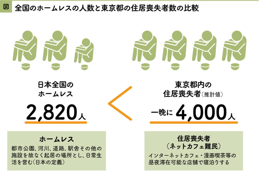 地域の空き家を改修し、その改修期間を活用して住居を持てない人々に住まいを提供し、さらに改修作業に彼らが参加することで仕事(収入)も得られる仕組みです。