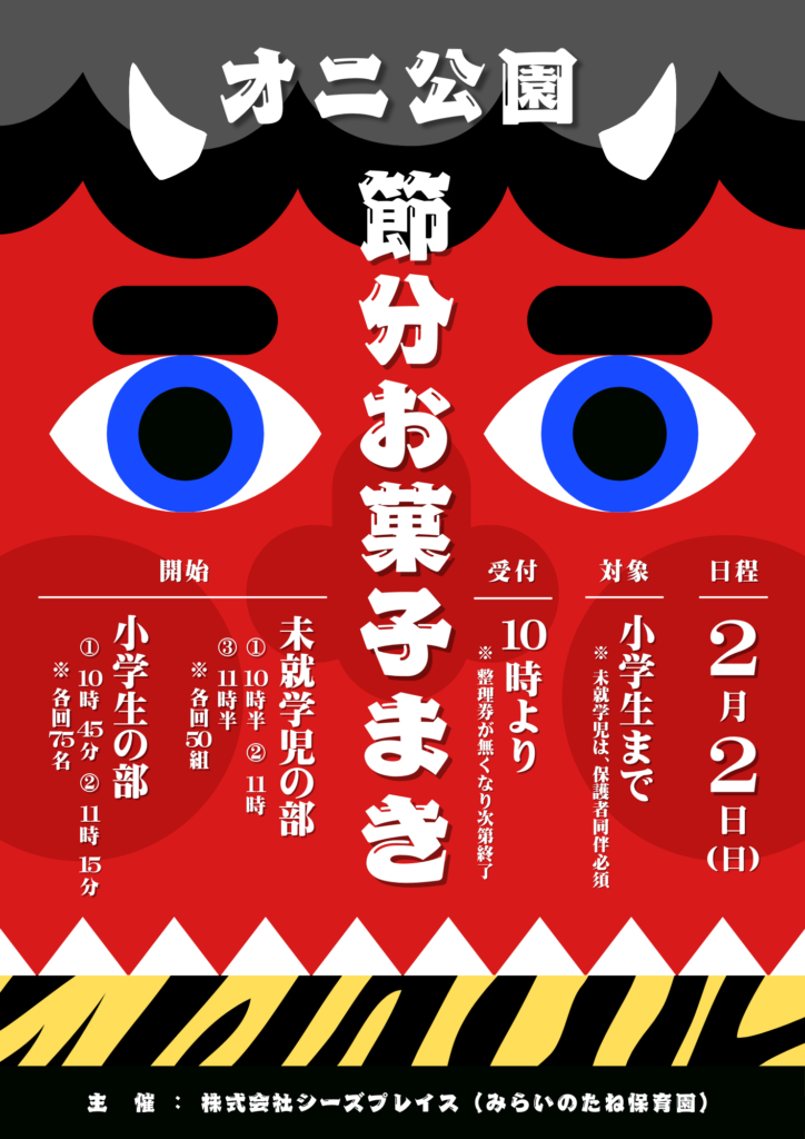 節分お菓子まき@オニ公園開催! 今年は小学生も参加OK!