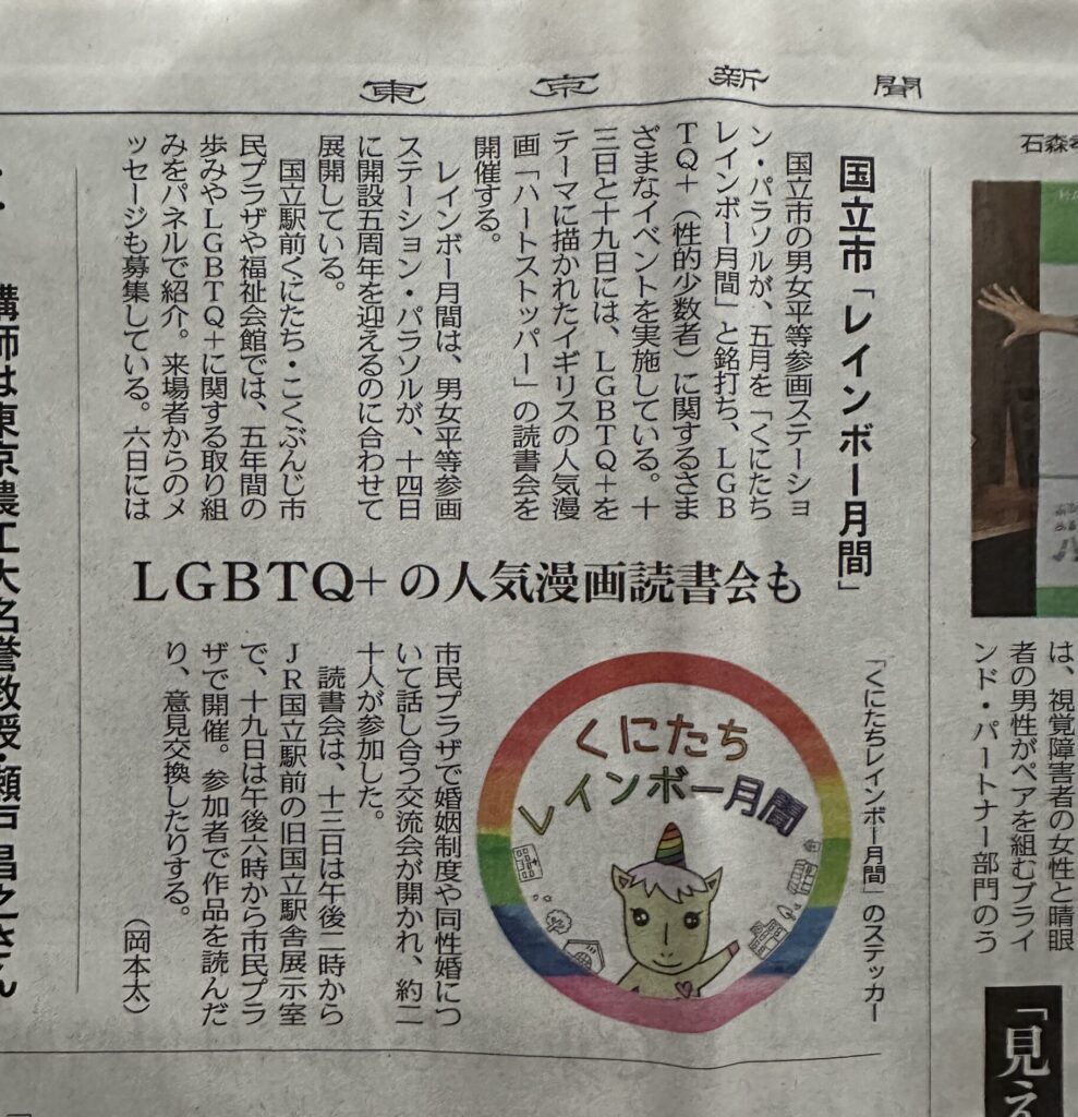 【東京新聞・朝日新聞】パラソル5周年!国立市「レインボー月間」