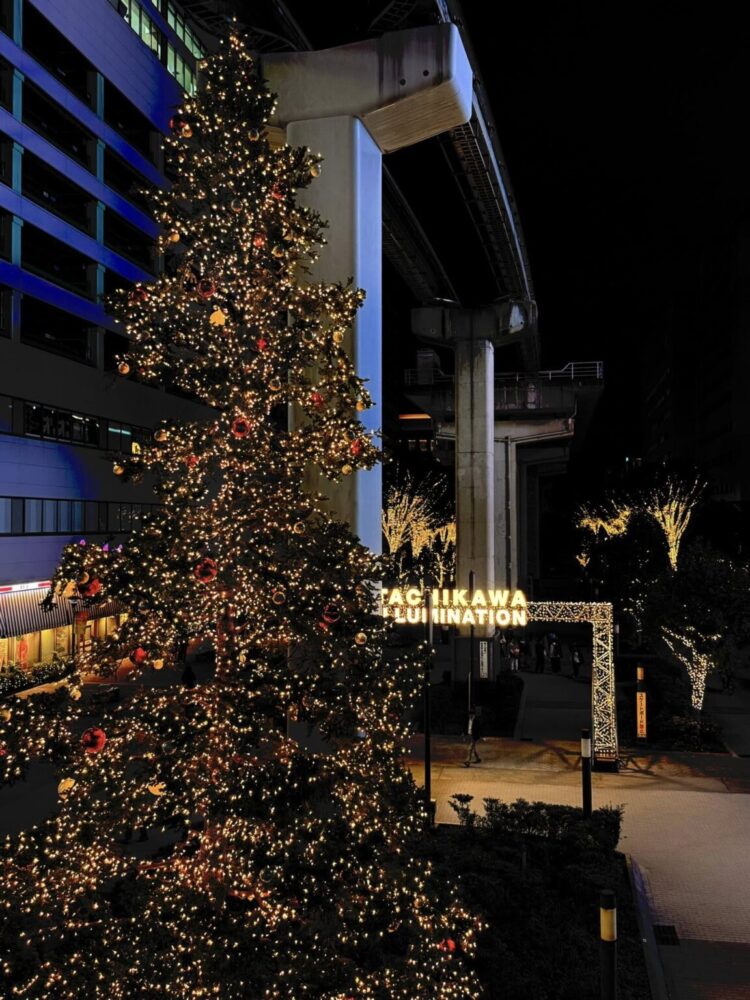 会議の帰り、先週末点灯式があった立川北口サンサンロードのイルミネーションの下を歩きました。