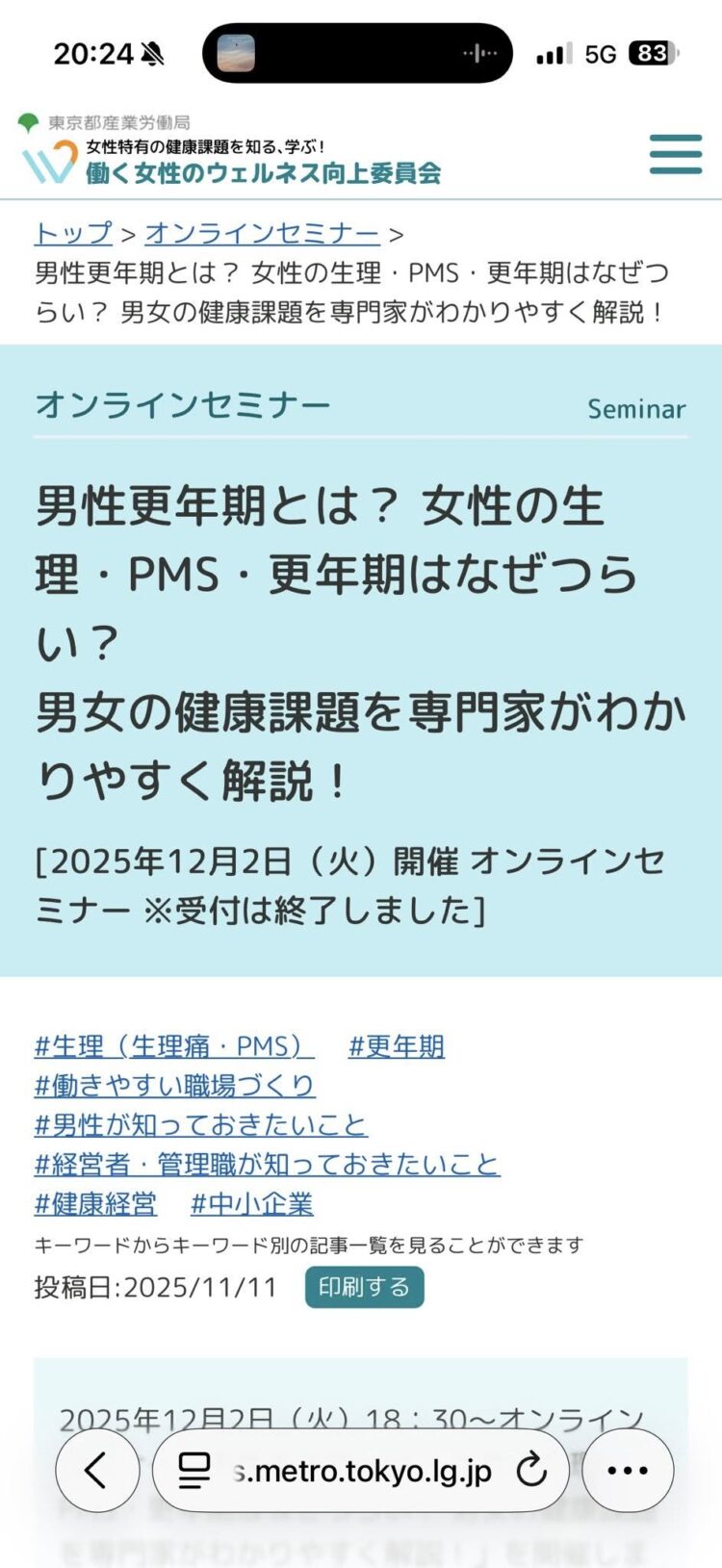 東京都「働く女性のウェルネス向上委員会」オンラインセミナー登壇