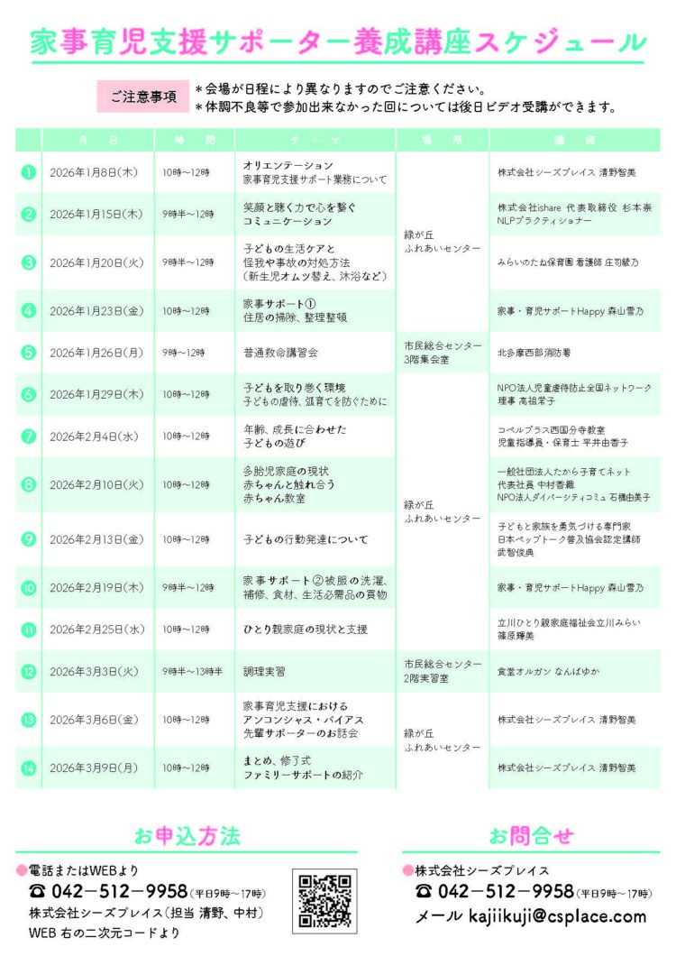 家事育児サポーター養成講座を開講します。