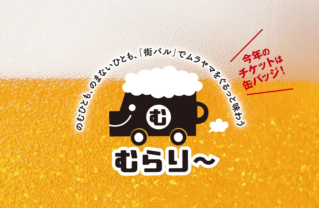 武蔵村山の飲食店を無料専用バスでめぐる、街バルイベント「むらり〜」では、オリジナルキャラクターをつくり、MAPやホームページと併せて参加者向けのバッジや、会場を盛り上げるフラッグなどに展開しました。プロのクリエイターが手がける訴求力の高いビジュアルで、地域の魅力を分かりやすく発信し、集客と認知度向上につなげます。