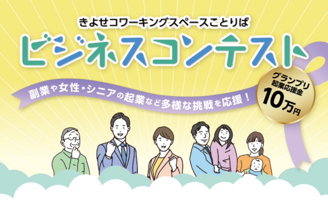 男女共同参画社会の実現に向けた気運醸成を目指し、副業や女性・シニアの起業等、市民の多様な挑戦を応援している清瀬市が、起業や既存のスモールビジネスの成長と拡大を一緒に目指ざし開催しているビジネスコンテスト。提出書類およびプレゼンテーション審査により、グランプリを選出します。